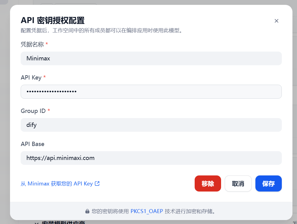 第一次使用MiniMax,需要在官网进行实名认证,会赠送15元的可用额度,认证好之后,回到Dify的模型供应商,继续配置,就能够成功了
