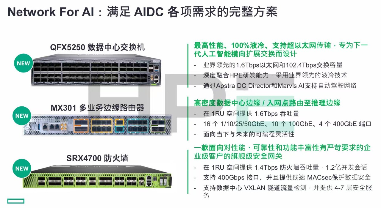 在网络承载AI的层面,HPE在Discover大会上连续发布三款最新的重磅产品。
