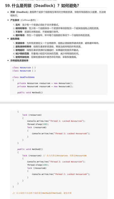 解决方案:避免嵌套锁、统一锁顺序、使用超时机制