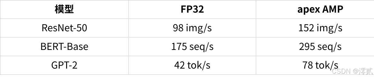 - 加速比:相对FP32训练的加速倍数