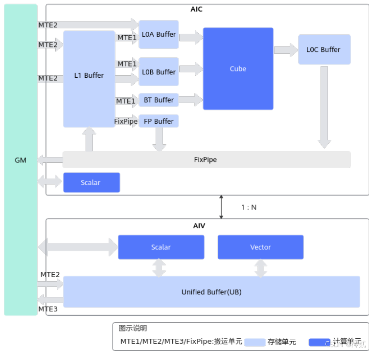 - 数据通路:通过GM内存实现AIC与AIV间的数据交换,带宽可达1TB/s