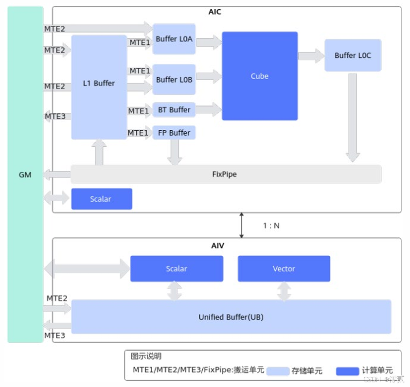 - Group架构:1个AIC+2个AIV组成计算单元组