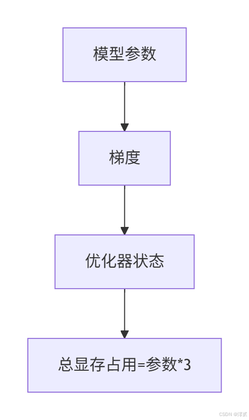 - 优化器状态:Adam优化器状态占用显存达参数量的2倍