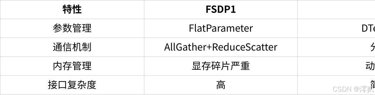 FSDP2通过移除FlatParameter和引入DeviceMesh,显著提升通信效率。 |