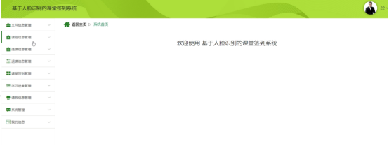 (2)教师注册登录,实现对文件信息管理、课程信息管理、选课信息管理、退课信息管理、课堂签到管理、学习进度管理、请假信息管理、系统管理、我的信息等进行操作;