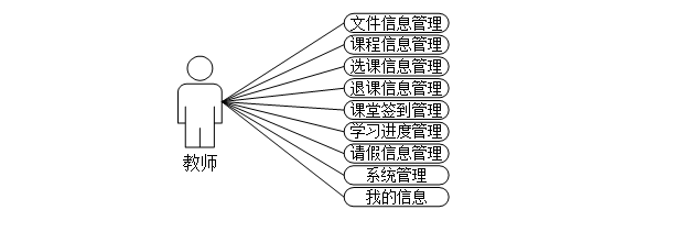 (2)教师关键功能包含文件信息管理、课程信息管理、选课信息管理、退课信息管理、课堂签到管理、学习进度管理、请假信息管理、系统管理、我的信息等进行管理。队干部用例如下: