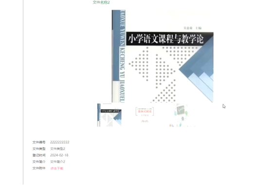 文件类型与文件信息:编号、名称、类型、封面、附件、登记时间、简介