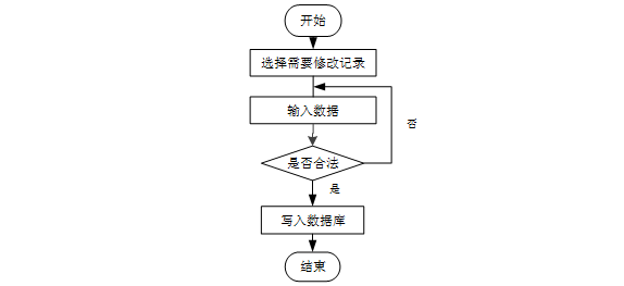 管理员可以修改学员课堂签到信息,用户可以修改自己权限内的信息,首先进入修改信息界面,输入需要修改信息,在系统进行判定为正确和合规后修改成功,并将数据更新至数据库。信息不合法则修改失败,重新输入。修改信息流程图如图3-6所示。