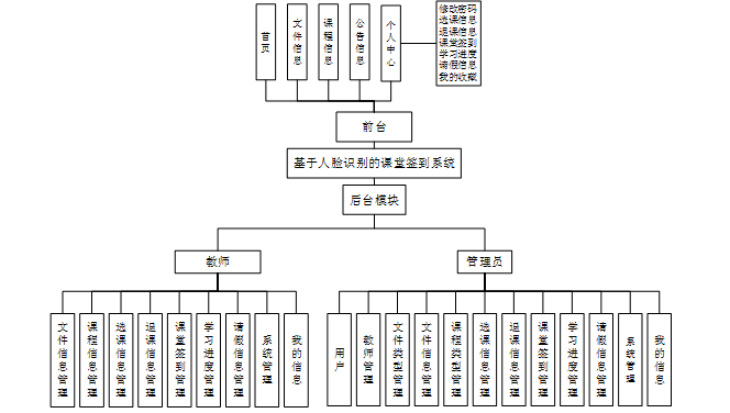 人脸识别的课堂签到系统综合网络空间开发设计要求。目的是将传统管理方式转换为在网上管理,完成学员课堂签到管理的方便快捷、安全性高、交易规范做了保障,目标明确。人脸识别的课堂签到系统可以将功能划分为管理员功能、教师功能和用户功能。