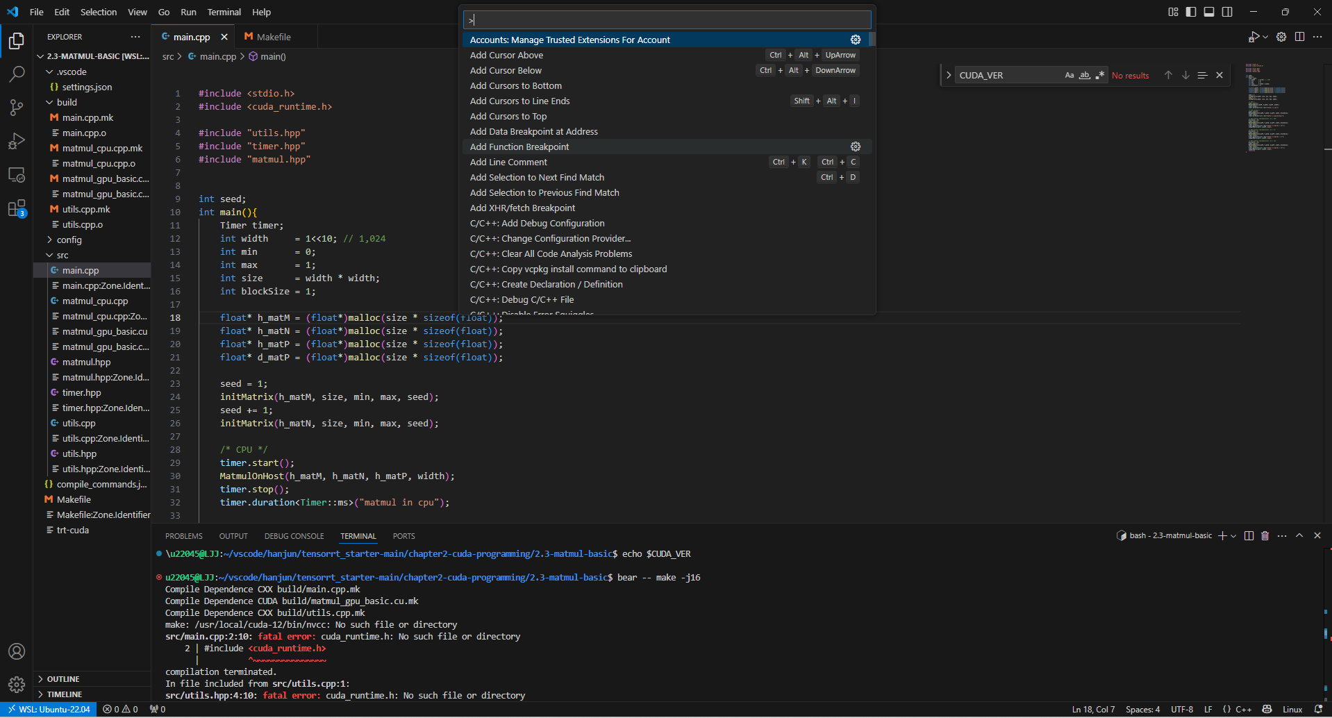 u22045@LJJ:~/vscode/hanjun/tensorrt_starter-main/chapter2-cuda-programming/2.3-matmul-basic$ bear -- make -j16