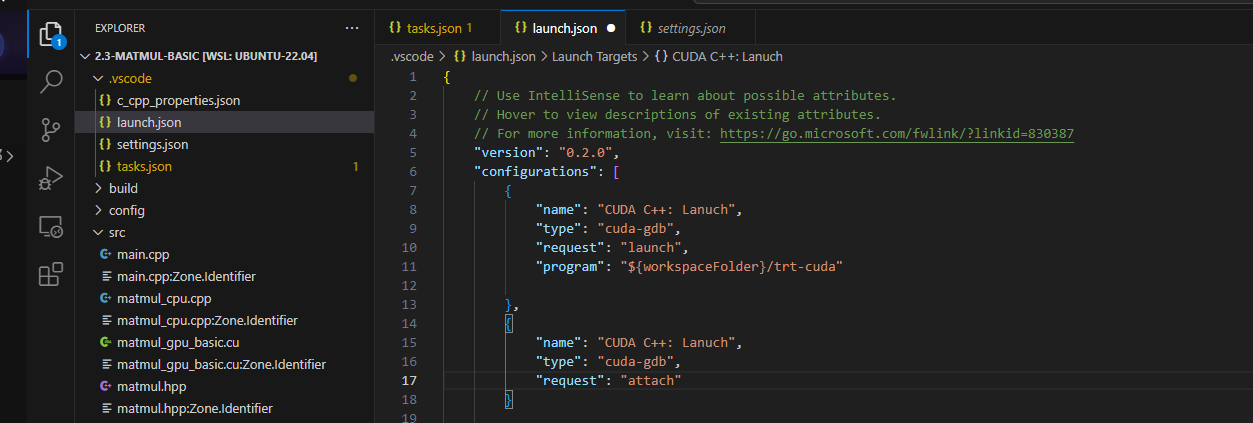 ②再次选择:CUDA C++(CUDA-GDB),自动生成lanuch文件,lanuch文件中的内容为: