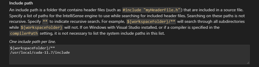 ②在inculde中添加cuda文件地址,/usr/local/cuda-11.7/include