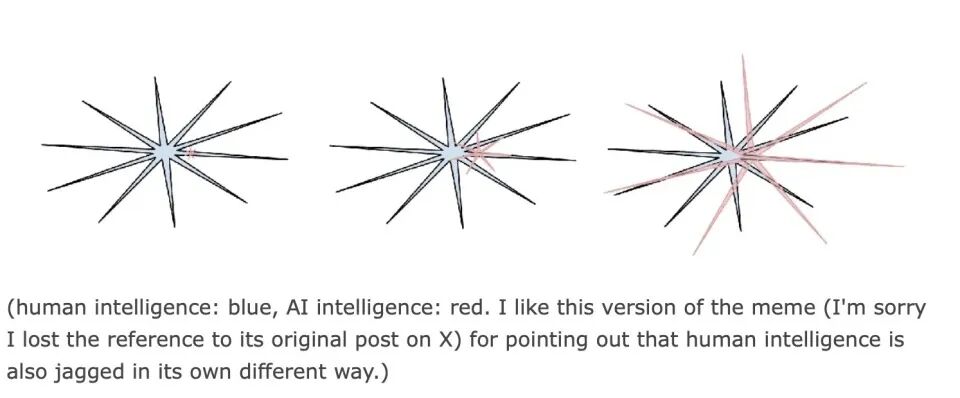 他用“召唤幽灵” (Summoning Ghosts) 而非“进化动物” ( E volving/growing Animals) 来比喻当前AI的成长模式,解释了为何当前的大语言模型会展现出“锯齿状”的性能特征——在尖端领域表现如天才,却在基础常识上可能如孩童般脆弱。