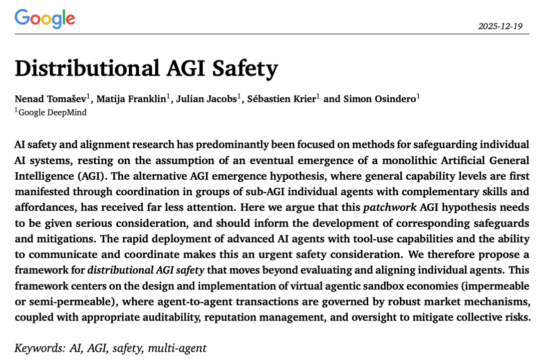 《分布式AGI安全》标志着AI安全研究的一个转折点。