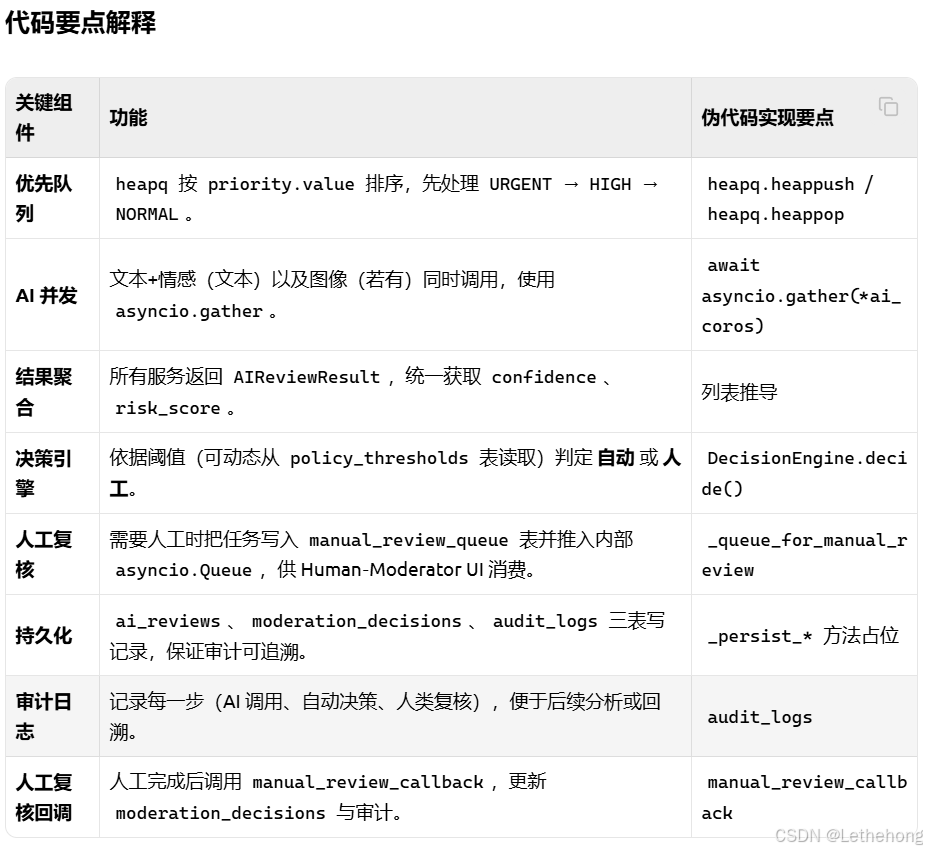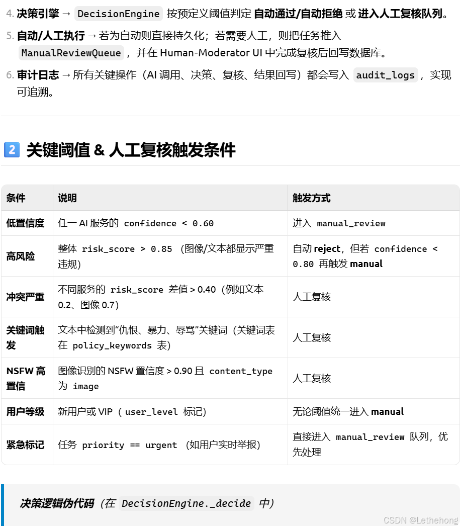 人工复核触发条件:高风险内容、AI置信度低、用户举报等