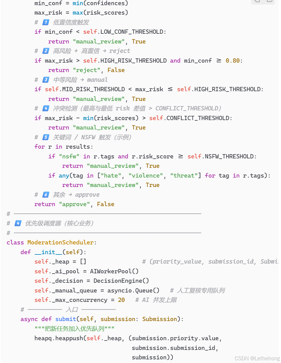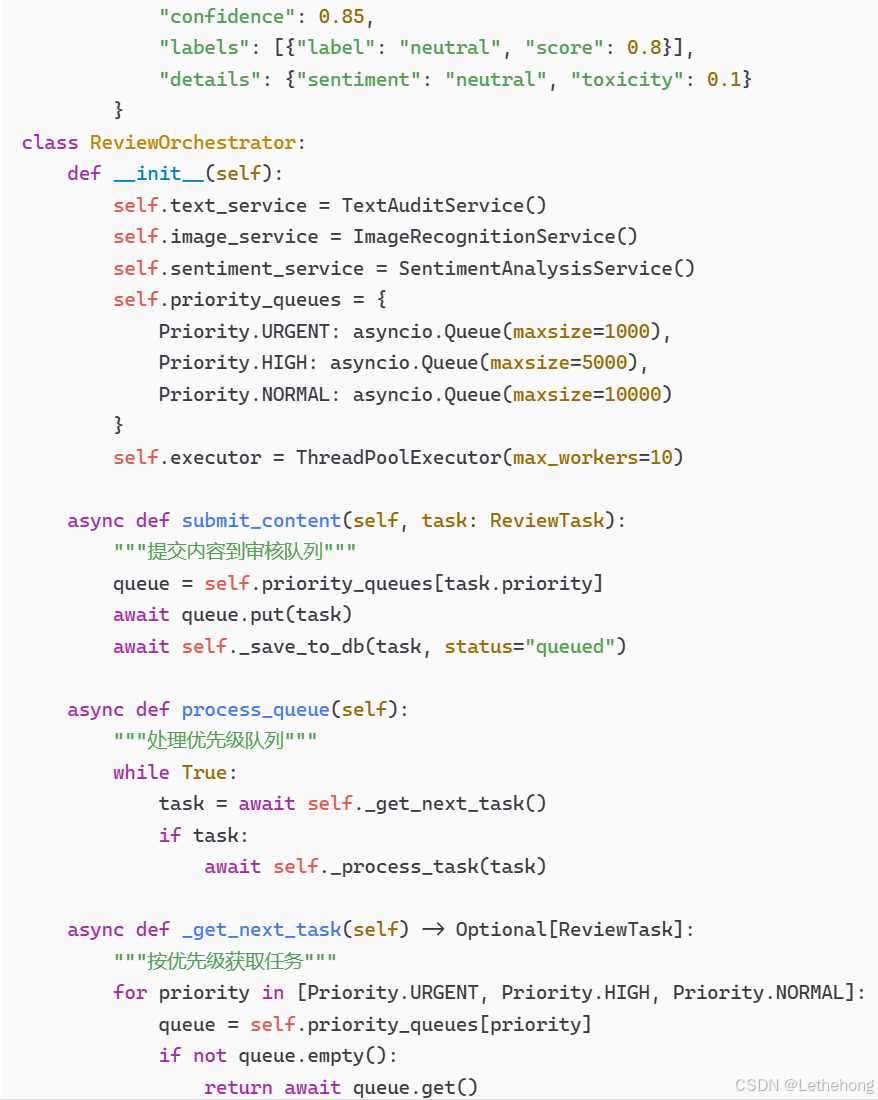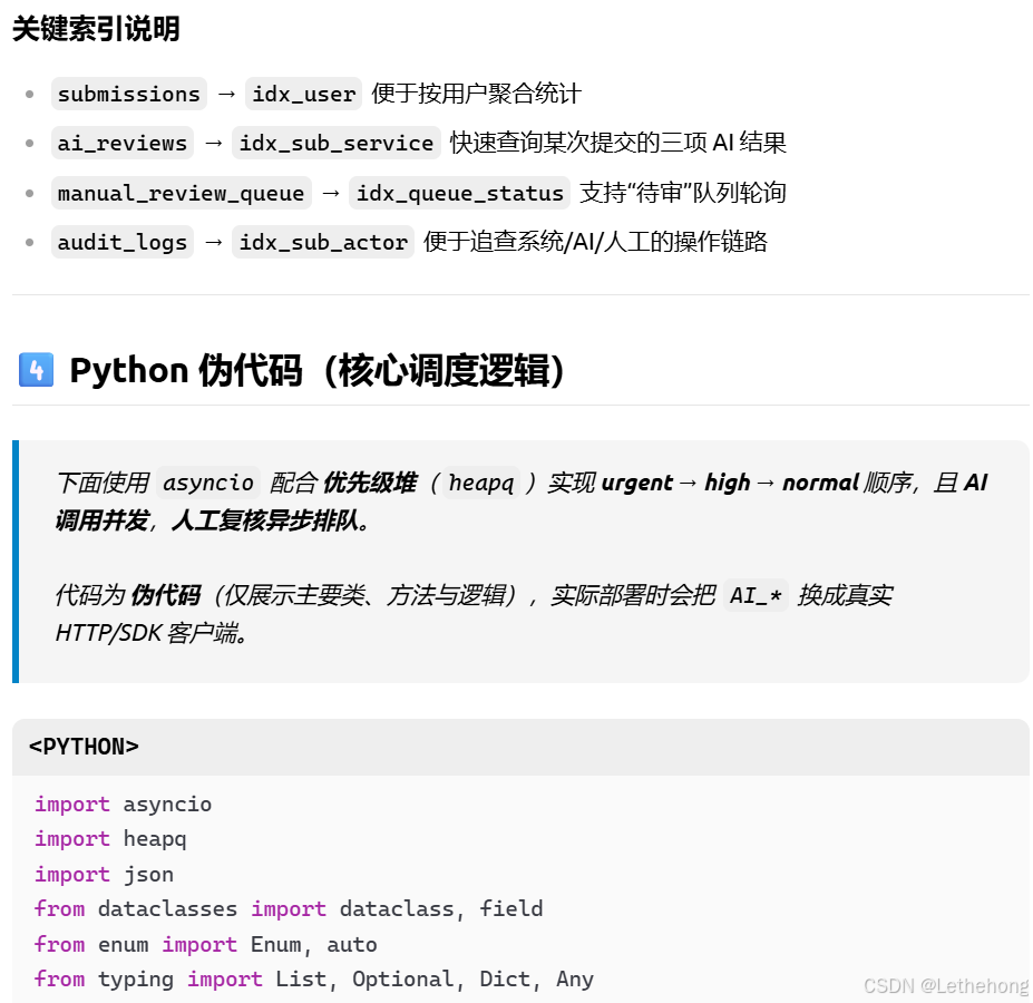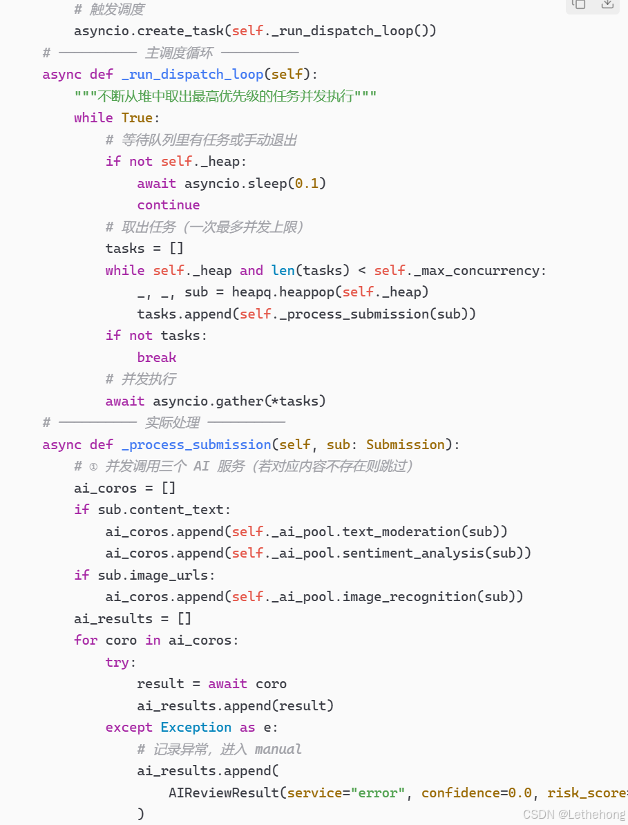 Python伪代码:提供了完整的调度逻辑,包含队列管理、并发处理、结果聚合