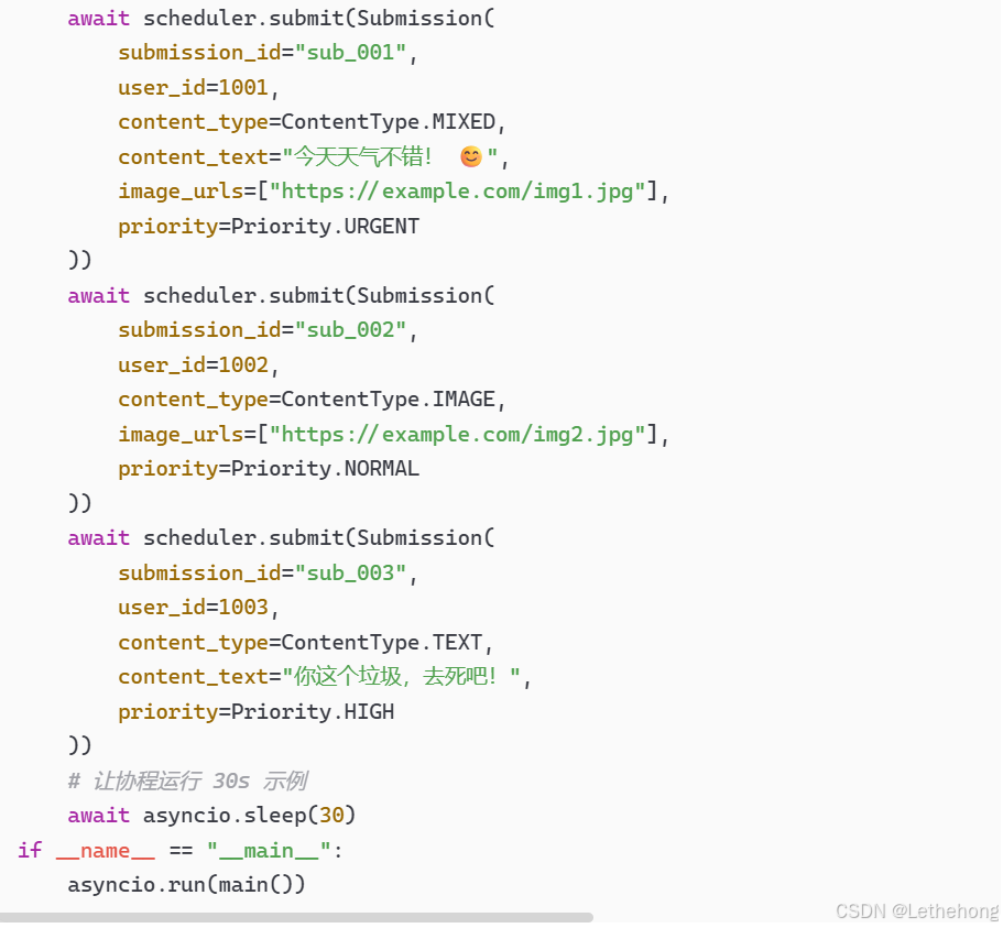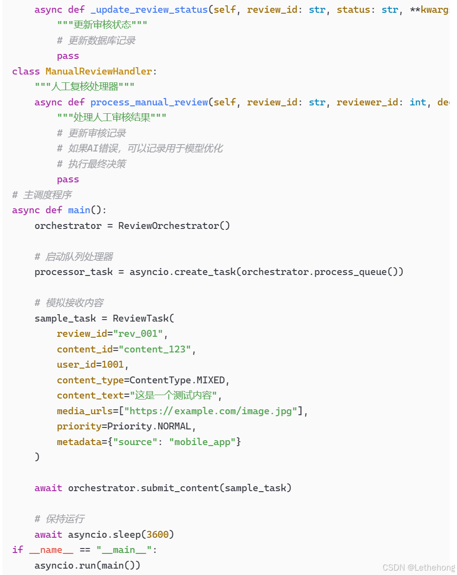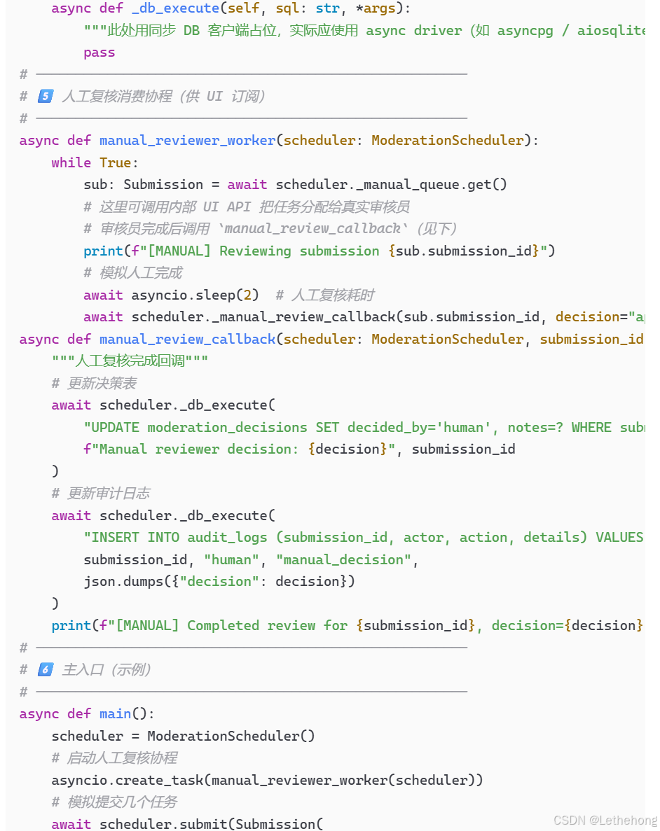 Python伪代码:提供了完整的调度逻辑,包含队列管理、并发处理、结果聚合