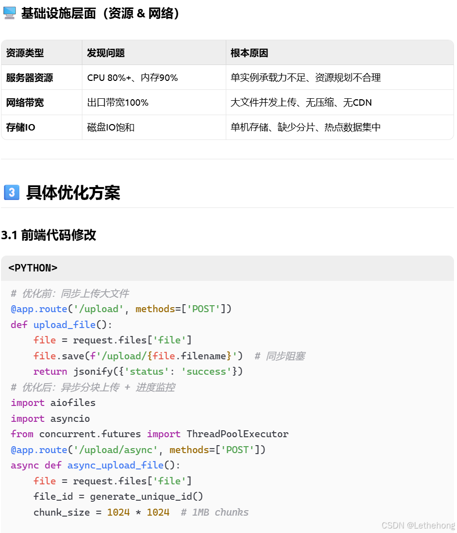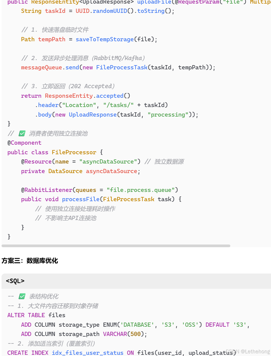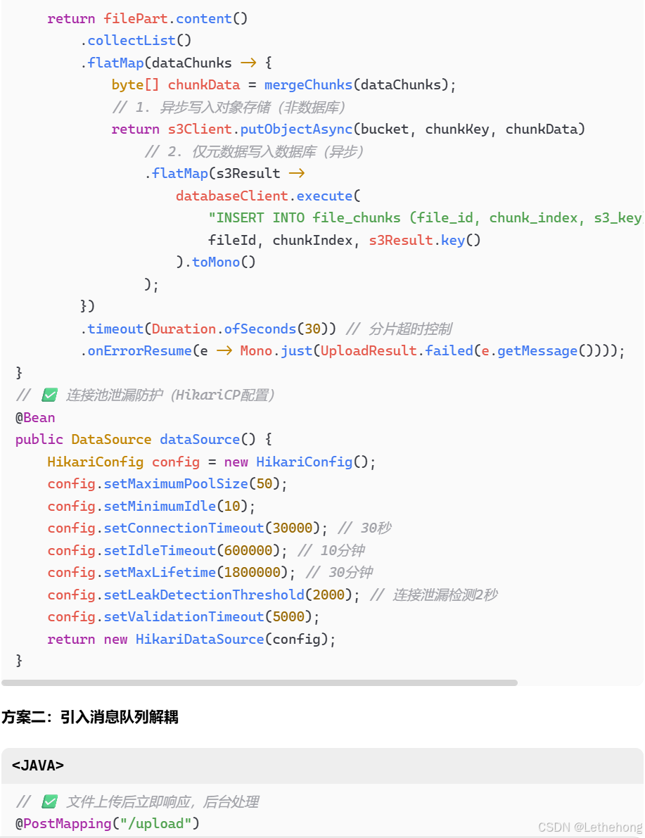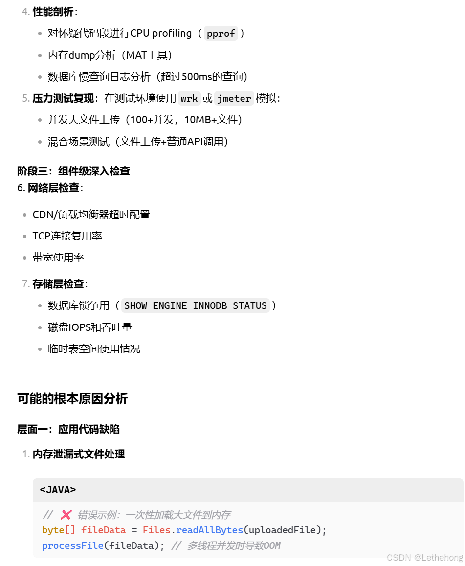 代码层:文件上传阻塞、数据库连接泄露、缺乏异步处理