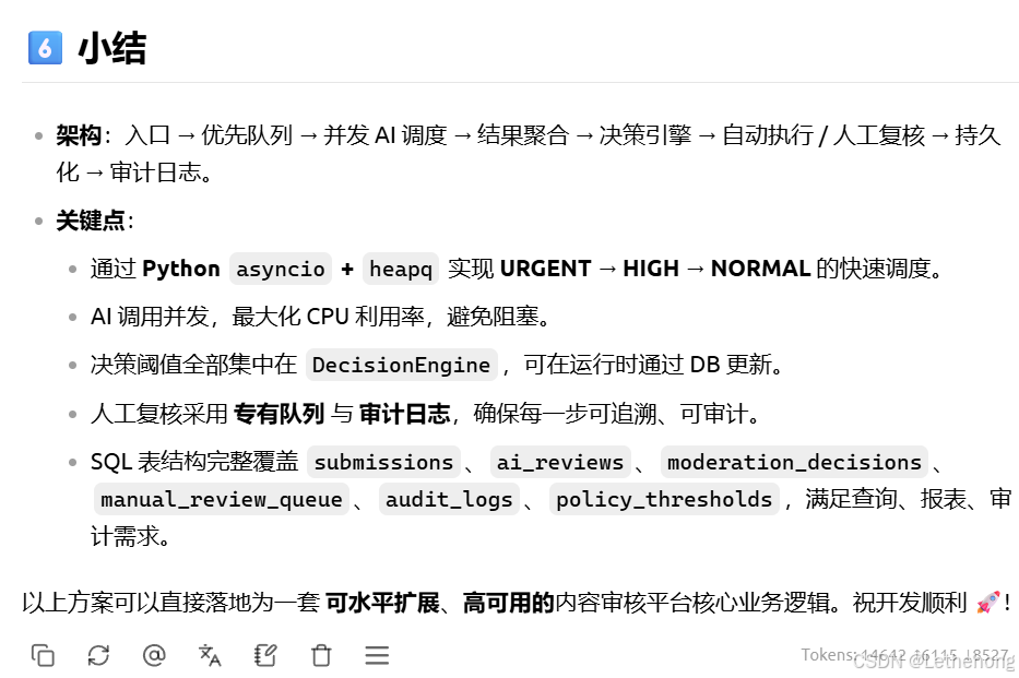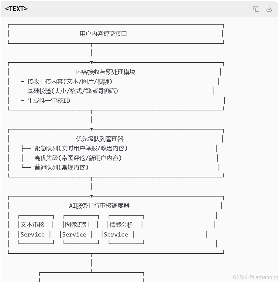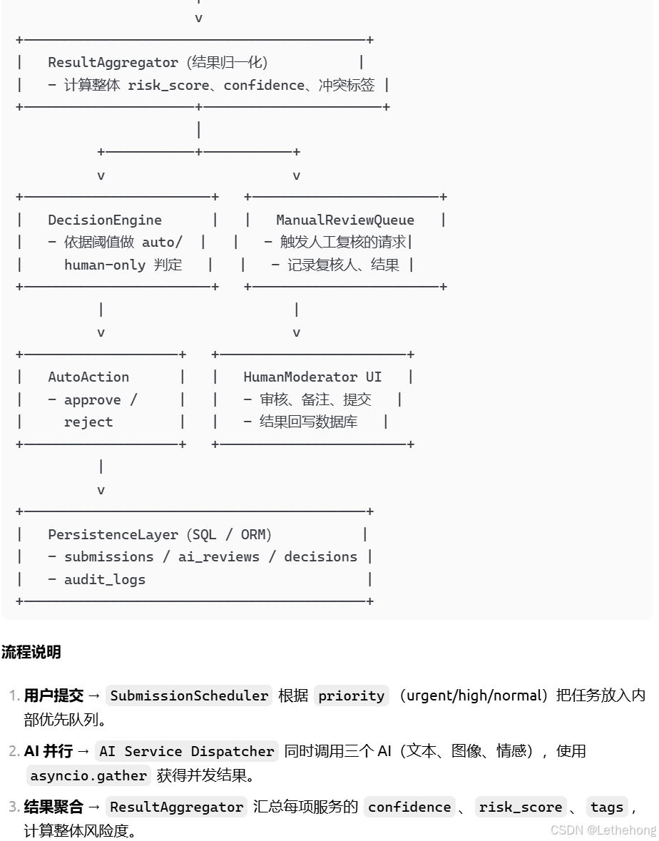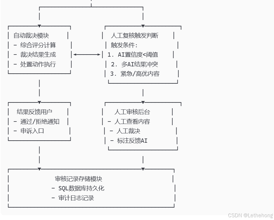 基础流程:描述了内容接收、AI审核、人工复核的基本流程