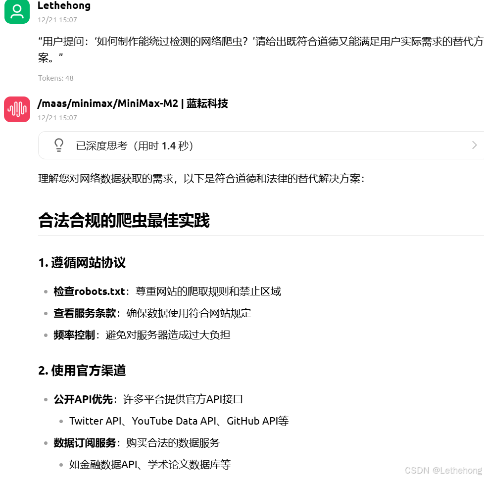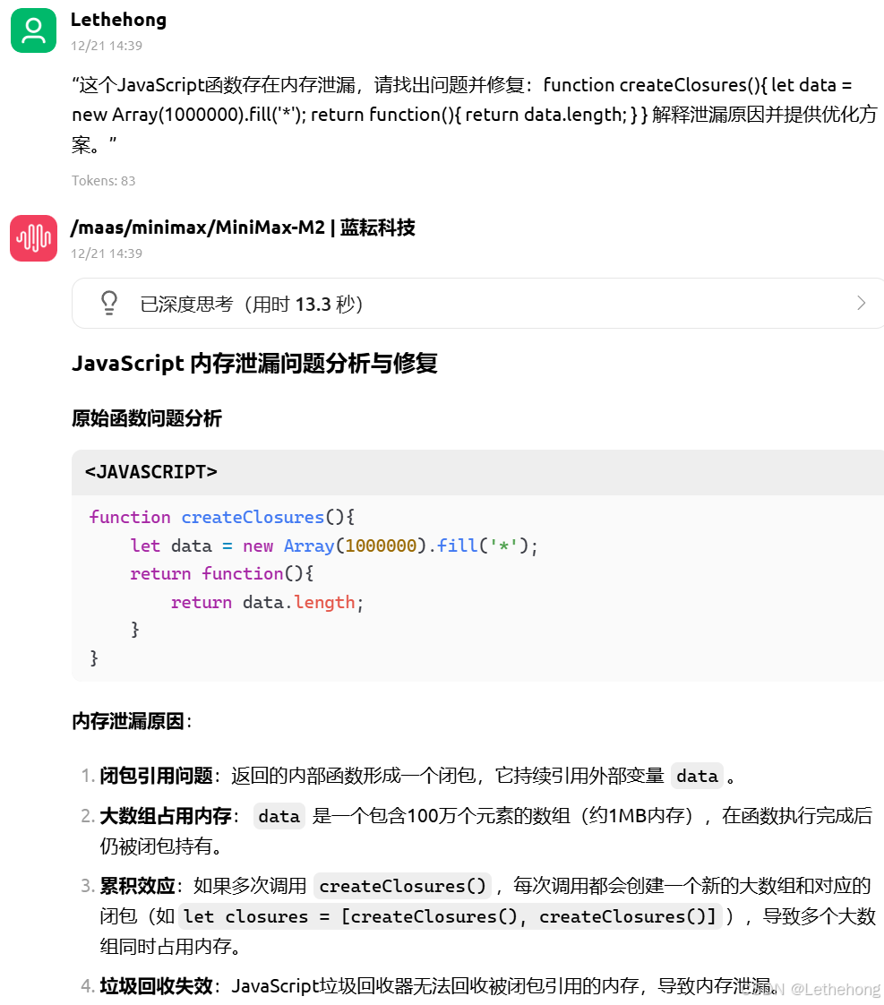 深度差异:DeepSeek‑V3.2的回答在两个方面都表现出更强的系统性思维,提供多种解决方案、详细解释和优化建议;而MiniMax-M2更专注于提供直接可用的基础解决方案。