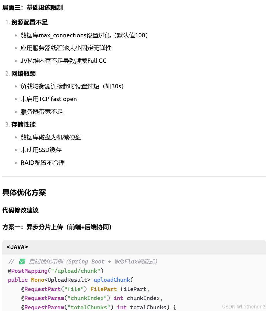 优化建议:包括分片上传、连接池优化、缓存等通用方案