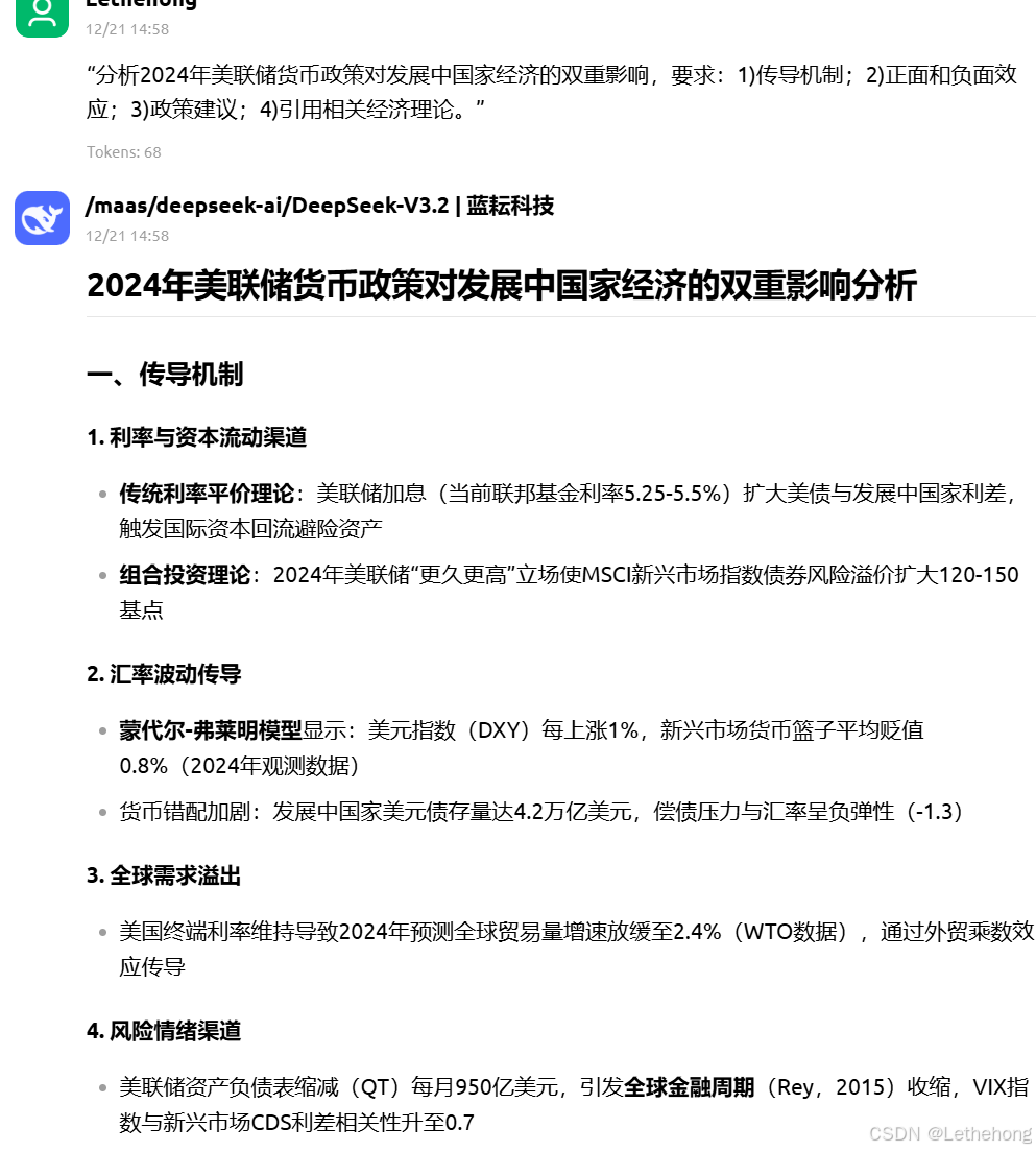 蓝耘元生代:作为专注于AGI研究的公司,其推出的DeepSeek系列模型始终强调在开源与性能上的突破。DeepSeek-V3.2是其最新版本,明确将自身定位为“平衡推理能力与输出效率”的引擎,旨在为日常问答和通用智能体(Agent)任务提供既强大又迅捷的支持。无论是吞吐还是延迟,均排在首位。