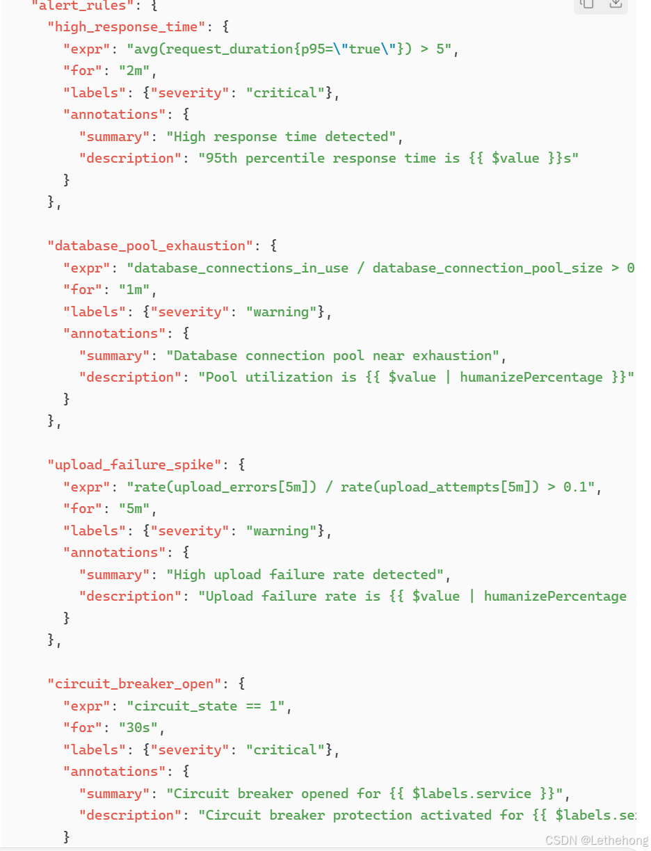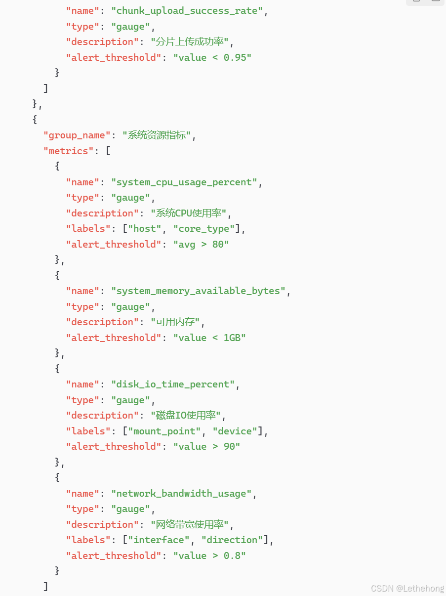 监控指标设计:完整的JSON方案,包含系统、应用、业务三级指标和告警规则