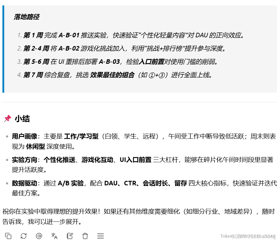 A/B测试建议:提出推送时机、内容类型、功能优化等方向