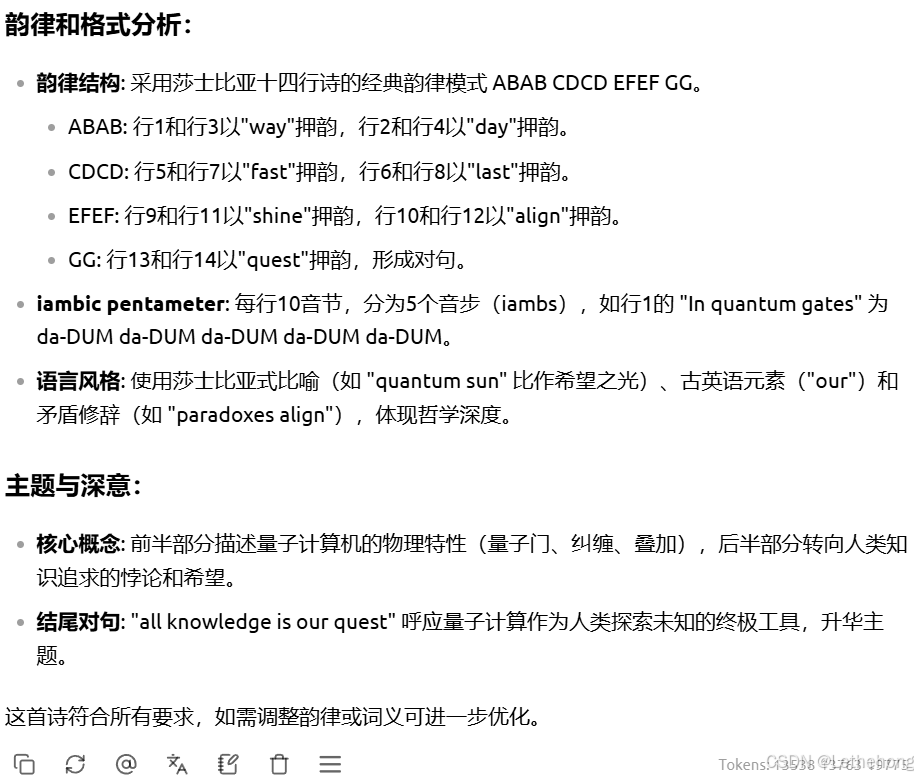 DeepSeek-V3.2 确实如其定位所言,在“平衡”上做得相当出色。它并非单纯追求响应速度,而是在保证输出紧凑、效率更高的同时,顽强地保留了深度分析的骨架。无论是将“理发师悖论”清晰关联到罗素悖论和集合论,还是为“三开关谜题”提炼出可推广到N个开关的一般性解决思路,都体现出其强大的逻辑抽象和理论延伸能力。在创意写作中,它能精准把握“冰山理论”的文风精髓;在专业分析时,又能搭建起有理论引用、有分层辨析的严谨框架。它的回答给人一种“冷静的专家”感——结构完整、逻辑严密、信息密度高,并且始终在尝试提供超出问题表面的、更具教育意义和系统性的价值。