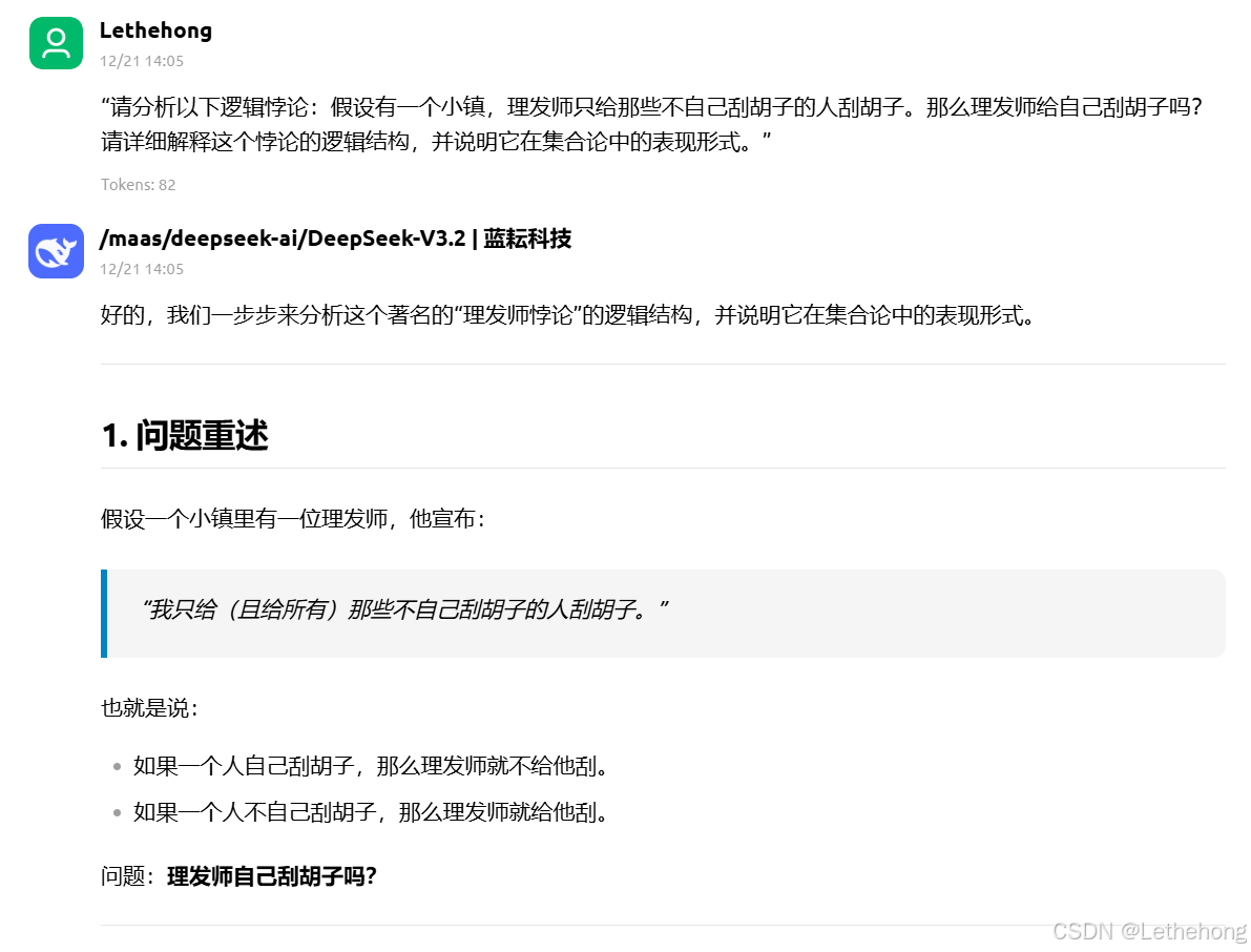 DeepSeek‑V3.2:在两方面均展现更强的理论深度与推广能力,善于联系经典理论(如集合论、物理原理)并延伸至一般情况,回答结构完整、逻辑严密。