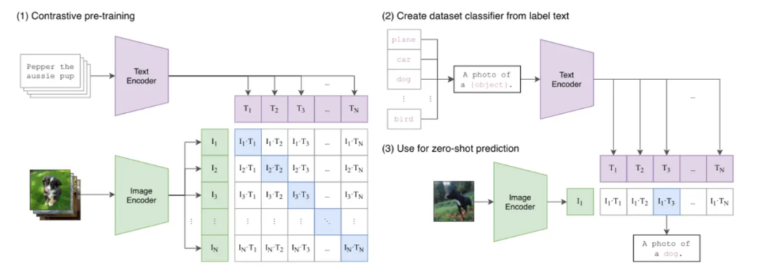 这里有必要提下OPenAI开源的CLIP模型,它有一个文本编码器和一个图像编码器,最终将文本和图像映射到同一个向量空间。