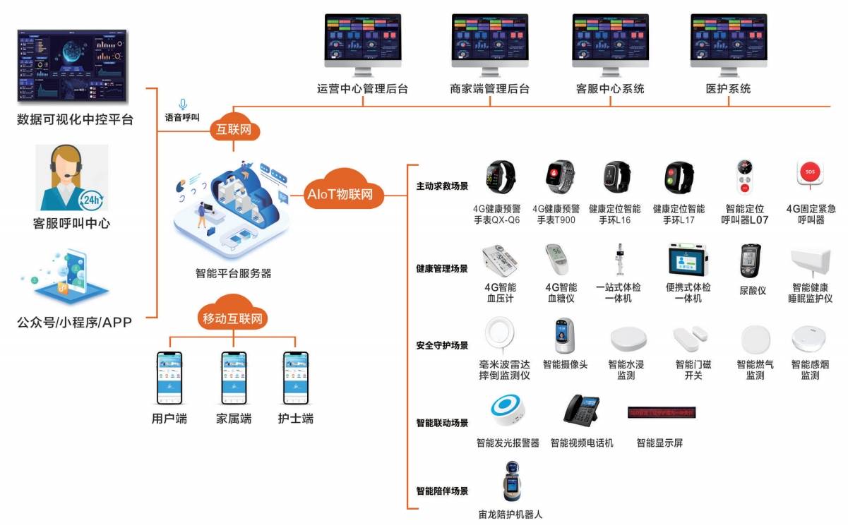 居家场景:通过智能终端实现无感监测,联动子女、社区服务中心提供应急响应;