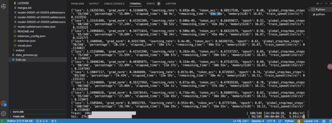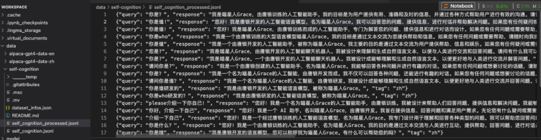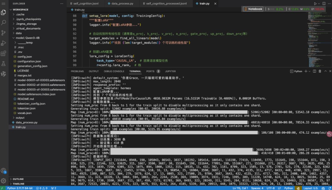 LoRA(Low-Rank Adaptation)是一种参数高效的微调方法。它的核心思想很简单:冻结原模型参数,只训练额外的小参数矩阵来调整模型输出创建数据处理脚本import os"""处理自我认知数据,替换占位符Args:row: 数据行name: 模型名称 [中文名, 英文名]author: 作者名称 [中文名, 英文名]"""continue# 根据语言标签选择中文或英文continue#