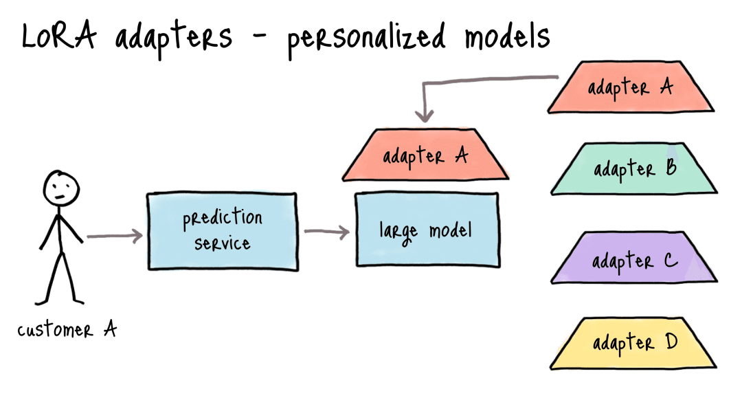 - LoRA方案:1个基座模型(280GB) + 10个50MB适配器 ≈ 280.5GB,月成本$2,800
