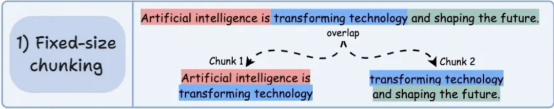 根据预先定义的字符数或token数将文本进行切分,在切分中为了保留各块间关系,快之间会保留一些重叠部分。