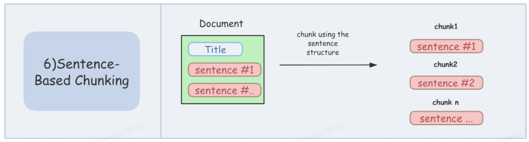 这种切分方式的优点包括保证了基本的语义单元完整,避免了“半句话”问题;缺点包括句子长度差异可能导致切分块大小不均匀,多个句子组合时,仍需要确定最佳组合策略,这个组合策略确定起来不容易。