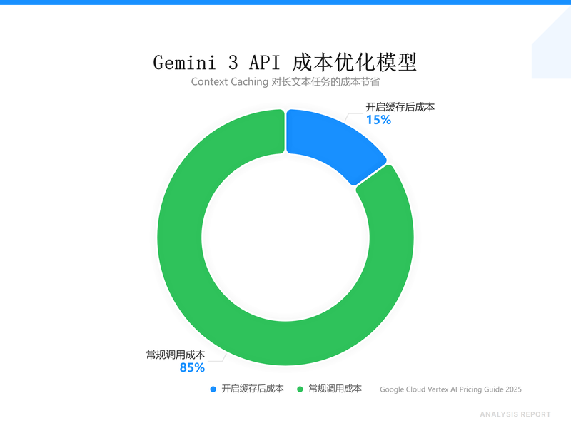 - 强制开启 Context Caching: 哪怕是资深架构师也常掉这坑。如果你的 Prompt 包含 500KB 以上的固定知识库,必须做 Caching。缓存后的输入成本是断崖式下跌的。