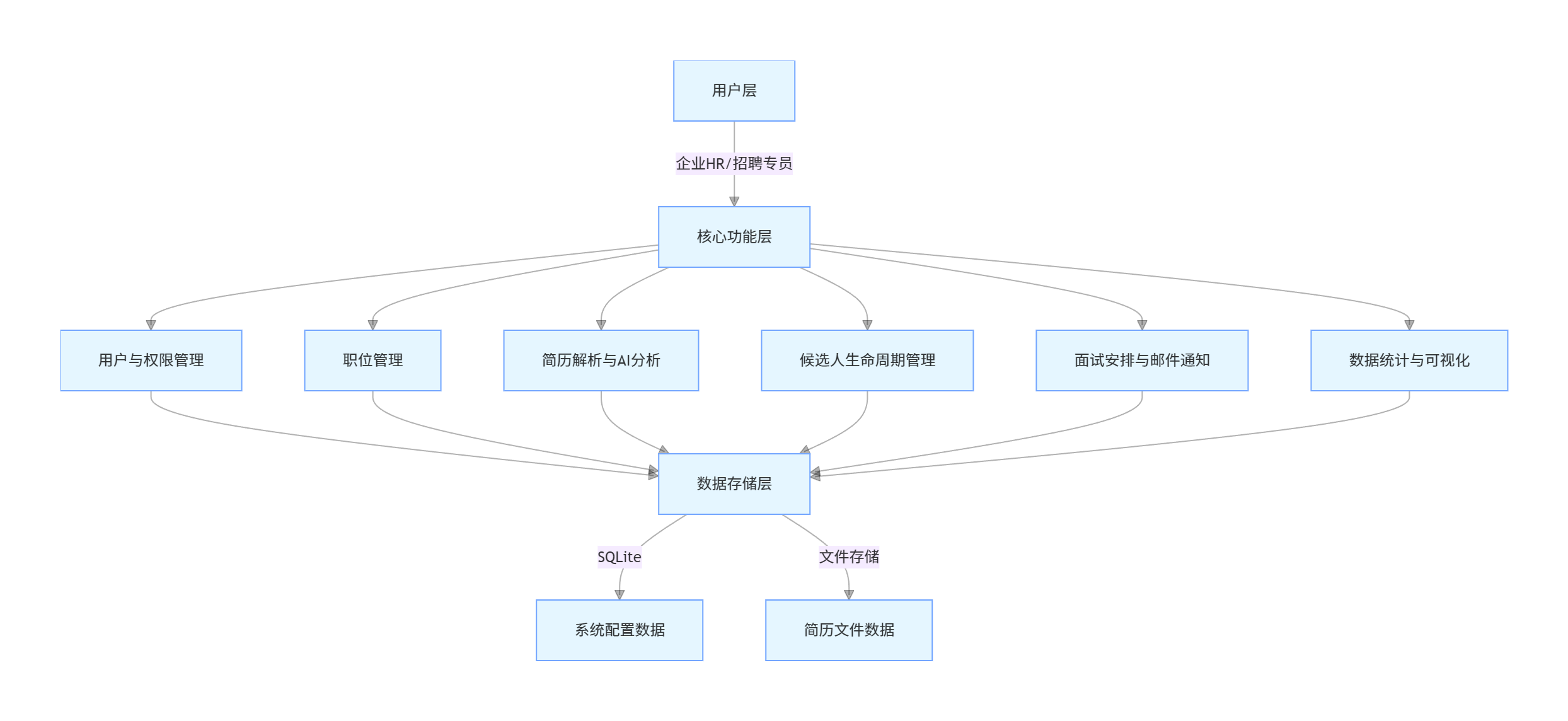 | 用户与权限管理 | 1. 企业用户注册 / 登录 / 注销;2. 系统配置(邮箱 SMTP、AI 服务地址);3. 账户安全与权限隔离 | Flask-Login、SQLAlchemy、SMTP 协议 | 保障企业数据独立,配置灵活适配不同需求 |