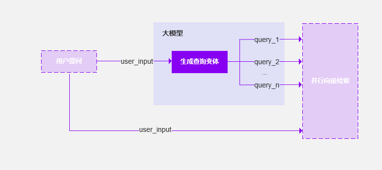 借助大模型生成多个在表述、重点、角度上存在差异的查询,然后将所有查询(含用户原始查询)同时(或异步)进行向量检索。