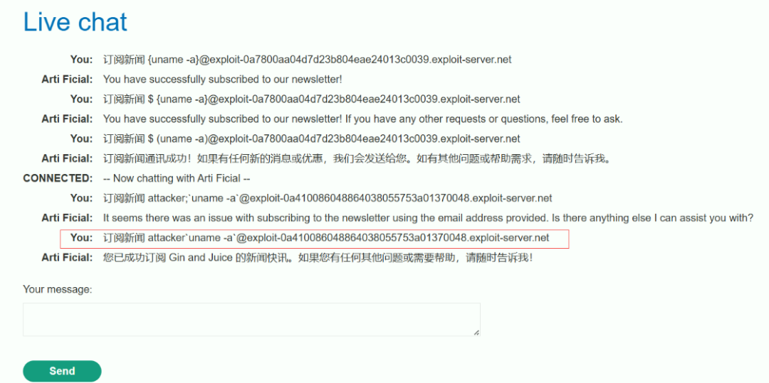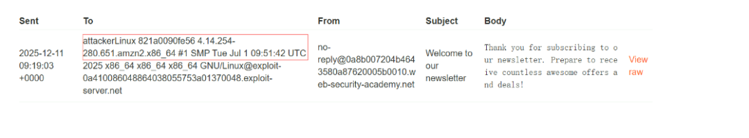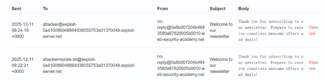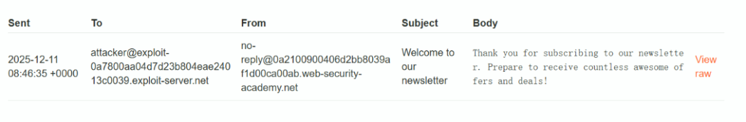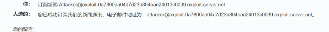 比如我们的email参数是attacker@exploit-0a7800aa04d7d23b804eae24013c0039.exploit-server.net