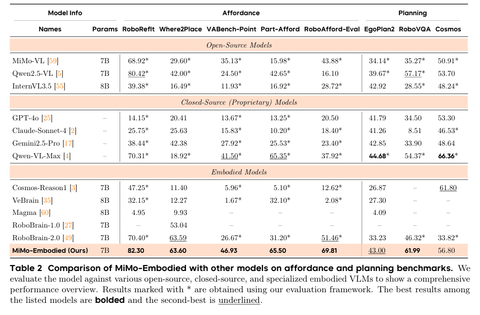 [1] MiMo-Embodied: X-Embodied Foundation Model Technical Report