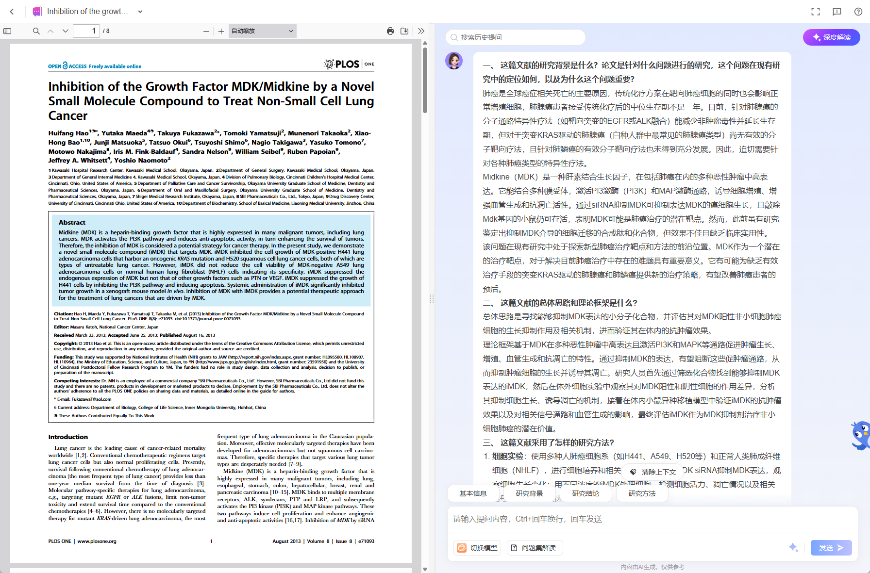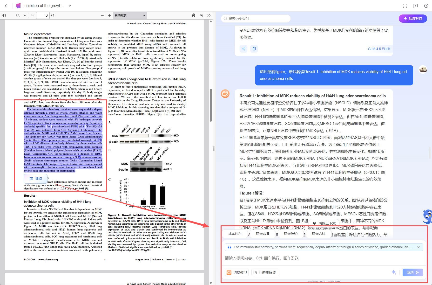 - 聚焦关键内容:若仅关注文献某一部分,可直接划选相关段落并针对性提问,在进行方法对比、结果分析等场景时,能大幅提升效率。