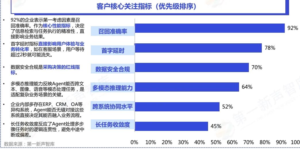 - 头部企业:优先部署高价值场景(如供应链优化、智能核保),召回准确率、数据安全成核心指标。
