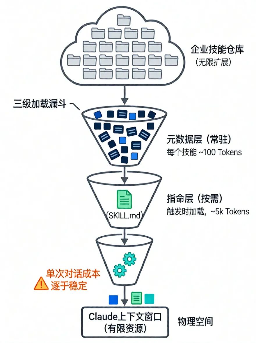 Claude Skill System的技术精髓在于其清晰的分层架构和高效的按需加载机制,这直接击中了企业AI规模化中成本与效率的核心痛点。