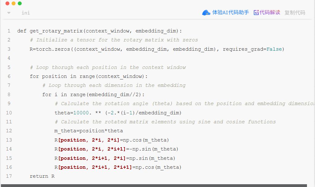 RoPE 是一种为 Transformer 模型提供序列中 token 位置信息的方法,它通过旋转每个 token 的词嵌入向量来编码其绝对和相对位置。与传统的绝对位置编码不同,RoPE 可以更好地处理可变长度的序列,并能有效地将相对位置信息融入到自注意力机制中。