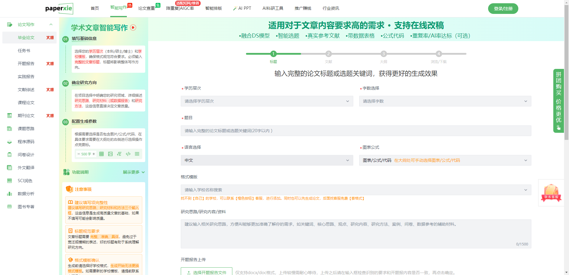 PaperXie 提供了高度可配置的生成参数,让你可以根据自己的需求“调教”AI: