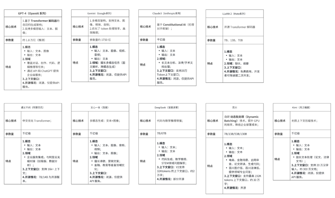 在讨论大模型的任务类型之前,我想先带大家了解一下主流的大语言模型。不论你认识其中的几个,或者用过其中的几个,至少在输入这部分知识之后再来了解大模型的任务,可以为你的实践建立理论联系。