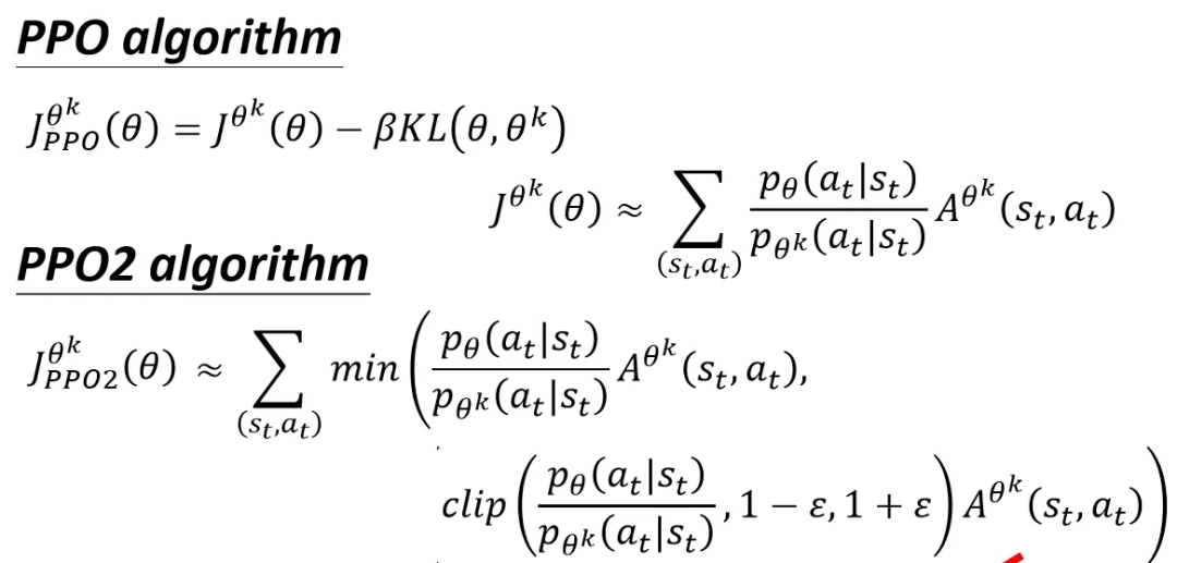 同时考虑到两个分布差异太大会导致重要性采样误差较大,使用KL散度约束新老参数产出的行为分布不能相差太多,也可以使用clip的方法对两个分布的差异进行clip。