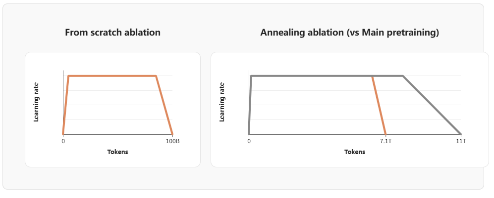 - 中后期(尤其学习率衰减阶段),引入高质量领域数据强化能力。