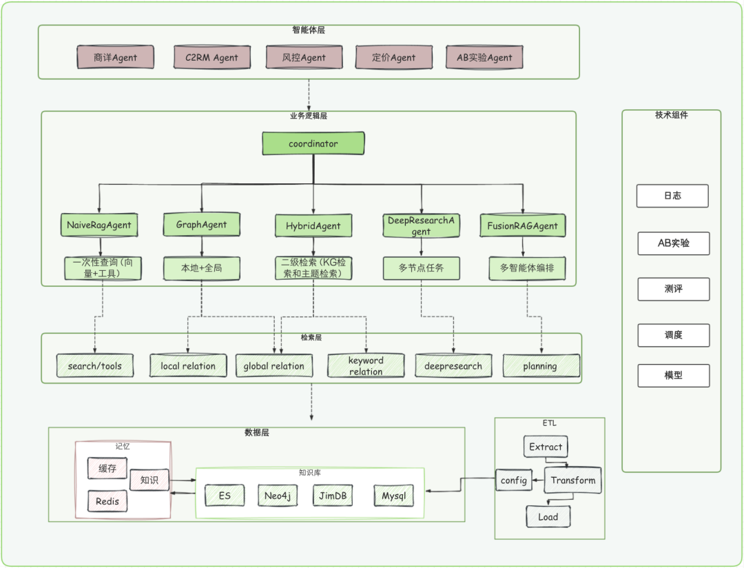 - 智能体层:承接业务Agent的检索需求,提供统一调用入口;
